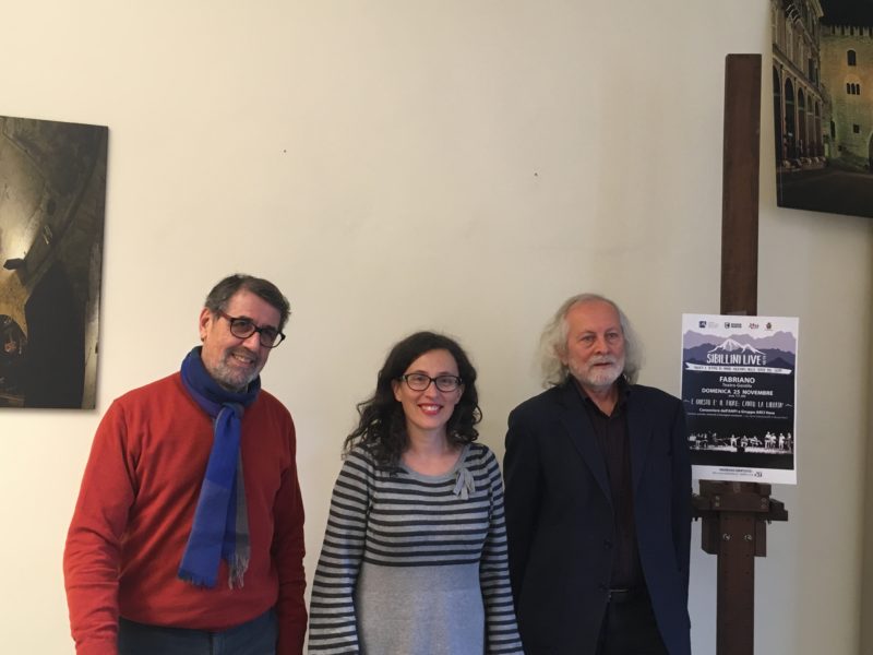 Nella foto: da sinistra Leonardo Lasca (canzoniere dell’ANPI) , Ilaria Venanzoni (Assessore alla Cultura del Comune di Fabriano) e Tullio Bugari (Arci Marche).