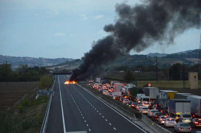 Inferno sull’A14 ieri pomeriggio: un furgone portavalori è stato assaltato all’altezza dell’area di servizio Conero da tre banditi che sono ora in fuga nelle campagne marchigiane. Un colpo pianificato con cura, sicuramente da una banda di professionisti, che ha agito con tecnica militare. I banditi hanno isolato due furgoni della Fitist che viaggiavano in direzione Sud, all’altezza dell’area di servizio Conero, tra i caselli di Ancona Sud e Porto Recanati, li hanno bloccati a colpi di kalashnikov e sono fuggiti dopo aver prelevato un borsone pieno di denaro. Ancora in fase di ricostruzione l’esatta dinamica dell’accaduto. Secondo le prime notizie, i banditi fingendosi poliziotti, a bordo di una Lancia Delta, hanno fermato un Tir che procedeva verso sud. Il fermo del mezzo pesante ha creato un primo rallentamento al traffico che è comunque proseguito. L’assalto ha provocato un incidente in cui sono rimasti coinvolti diversi veicoli. C’è stato anche un incendio. Il tratto compreso tra Ancona Sud e Loreto, in direzione Pescara, è chiuso, il traffico è bloccato: ci sono due chilometri di coda. Lo riferisce il Corriere Adriatico.