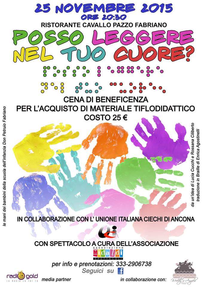 Appuntamento con la beneficenza a Fabriano. Domani, 25 novembre, presso il ristorante Cavallo Pazzo tutti a cena con lo slogan ‘Posso leggere il tuo cuore’? Una serata organizzata con l’Unione Italiana Ciechi di Ancona. Per saperne di più ascolta lo spot.