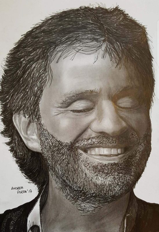 “Gli occhi parlano sempre. Io parto da questo particolare. Aperti o chiusi, mi fanno entrare nell’anima del personaggio. Prendo la carta Fabriano, la mia matita e, con un bel sottofondo musicale, inizio a disegnare. Nasce un ritratto curato nel dettaglio: anche la sfumatura è artistica. La faccio con le dita. Mi sporco tutto, ho le mani nere, ma così quel foglio è vivo”. Andrea Poeta, 50 anni giovedì prossimo, centralinista presso il Comune di Fabriano, è nato a Roma, ma da sempre vive nell’entroterra. Si è sposato, ha una figlia piccola e tanti amici e ammiratori che lo seguono. Nel tempo libero, infatti, è un apprezzato ritrattista. Dal 1981 ad oggi ne ha realizzati più di 400. Dopo averne consegnato uno personalmente nella casa di Lucio Dalla, ora è pronto per andare a Firenze con il maestro cartario Sandro Tiberi. “Una volta che sarà pronta la cornice fatta a mano – confida – vorrei consegnare il ritratto ad Andrea Bocelli. Un grande onore per me e una grande responsabilità perchè è pur sempre un modo per far girare dappertutto il nome di Fabriano”. Poeta, da 37 anni, realizza ritratti di musicisti e attori e quello di Bocelli è solo l’ultimo. La passione gli e l’ha trasmessa sua madre che ha sempre dipinto ad olio e le sue opere sono state esposte anche al Palazzo dei Congressi di Roma. Iniziò con Phil Collins, cantautore che apprezzava in modo particolare. In quegli anni “non avevo soldi per comprare carta pregiata perchè non lavoravo, ma non riuscivo a stare senza la matita in mano”. Ora il tempo libero del weekend e tante ore notturne vengono dedicate a questa passione. “Impiego anche 18 ore – spiega – per realizzare un ritratto”. Prima di Dalla e Bocelli ha disegnato anche Eros Ramazzotti, Marco Mengoni, Pino Daniele, David Bowie, Freddie Mercury, Emma Marrone, solo per fare alcuni esempi. Negli anni non si è mai fermato. Minimo 1-2 opere al mese l’ha sempre portate a termine Andrea. Le sue opere girano il mondo. Molti ritratti, infatti, sono esposti negli Stati Uniti, altri in America Latina, alcuni in Germania. “In un pub della California ci sono 60 ritratti esposti, tutti rigorosamente su carta Fabriano”. A dire il vero, però, manca una mostra nella sua città, Fabriano. “Ne ho parlato con l’assessore alla Cultura, Ilaria Venanzoni – dice. –L’obiettivo è quello di realizzarne una insieme a Metello Gregori, fabbro che lavora, come me, in Municipio che ha creato tante insegne turistiche. “Dal ferro alla carta” potrebbe essere il titolo della mostra che racchiuderebbe, così, i due simboli della città”. Andrea oggi ha solo un rimpianto: non aver ancora fatto il ritratto del padre deceduto sei anni fa. Un sogno? Riuscire a consegnare personalmente a Papa Francesco il suo ritratto.