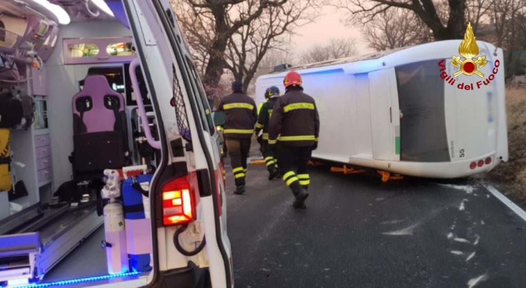 Questa mattina alle 7 circa, i vigili del fuoco sono intervenuti nel Comune di Sassoferrato, strada SP 48 direzione Montelago, per incidente stradale. Per cause in fase di ricostruzione, l’autista – M.S., 30 anni di Sassoferrato – di un pulmino adibito al trasporto scolastico, ha preso il controllo, forse causa maltempo, rovesciandosi su di una fiancata. I vigili del fuoco in collaborazione con i medici del 118, hanno soccorso l’autista unico occupante dell’automezzo che è stato trasportato al pronto soccorso di Fabriano in eliambulanza. Non è in pericolo di vita. Terminate le operazioni di soccorso i vigili del fuoco hanno messo in sicurezza lo scenario dell’incidente, la SP 48 è tutt’ora chiusa al traffico. La riapertura in mattinata.