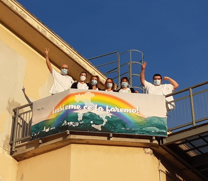 Sassoferrato – Un arcobaleno dall’ospedale per dire che “Insieme ce la faremo”. Da questa mattina, 13 marzo, sulla ringhiera dell’ospedale di comunità Sant’Antonio Abate, c’è uno splendido striscione. E’ un arcobaleno che illumina il paesaggio sentinate dove si riconosce il Castello di Sassoferrato, il Monte Strega e ricorda l’Italia con lo slogan “Insieme ce la faremo”. L’iniziativa è degli infermieri, Oss e dei medici che lavorano nelle corsie del nosocomio sentinate. Un gesto importante in un luogo strategico. Il messaggio avvicina le persone in un momento dove tutti dobbiamo essere lontani l’uno dell’altro ed è affisso sulla facciata di un nosocomio che, sulla scacchiera della riorganizzazione sanitaria degli ospedali delle Marche, è al servizio dei pazienti non coronavirus dell’anconetano.
