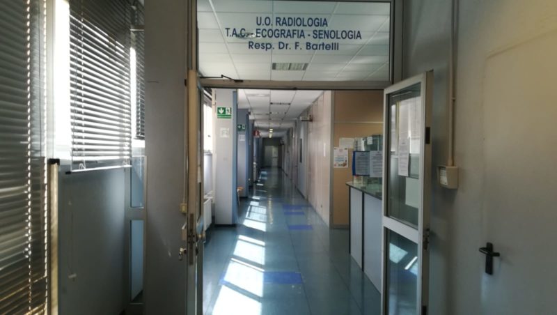 Fabriano – Tra i reparti che lavorano a pieno ritmo, insieme a Medicina e Pronto Soccorso, c’è la Radiologia. Situata al piano terra dell’ospedale Profili, svolge un lavoro essenziale sia per accertare una patologia, attraverso la diagnostica, che per permettere al chirurgo di intervenire in sala operatoria. In questa fase, oltre all’attività di controllo oncologico e di supporto alle varie equipe chirurgiche che operano le urgenze provenienti da tutta Area Vasta 2 e non solo, la Radiologia svolge un lavoro delicato nell’ambito del Covid-19. Sono tanti, infatti, i sospetti Coronavirus che vengono mandati, una volta effettuato il triage al Pronto Soccorso, in questo reparto per un esame. Bisogna accertare, per esempio, la presenza di polmonite interstiziale, tramite radiografia al torace o, nei casi più complessi, tramite tac.
