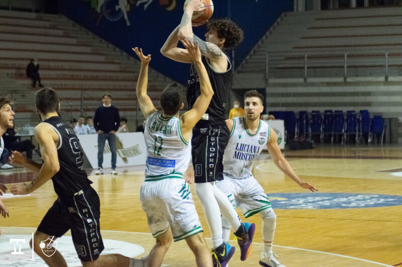 Luciana Mosconi Ancona: Gianmarco Leggio 26 (6/10, 3/5), Simone Centanni 16 (4/9, 2/6), Alessandro Potì 14 (4/9, 2/6), Alessandro Paesano 10 (5/7, 0/2), Michele Caverni 6 (1/2, 1/1), Francesco Oboe 4 (2/3, 0/2), Luca Rattalino 0 (0/1, 0/0), Thomas Aguzzoli 0 (0/2, 0/0), Veselin veselinov Gospodinov 0 (0/0, 0/0), Pietro Mancini 0 (0/0, 0/0), Francesco Carboni 0 (0/0, 0/0). Tiri liberi: 8 / 12 – Rimbalzi: 33 8 + 25 (Alessandro Potì 16) – Assist: 23 (Simone Centanni 9)