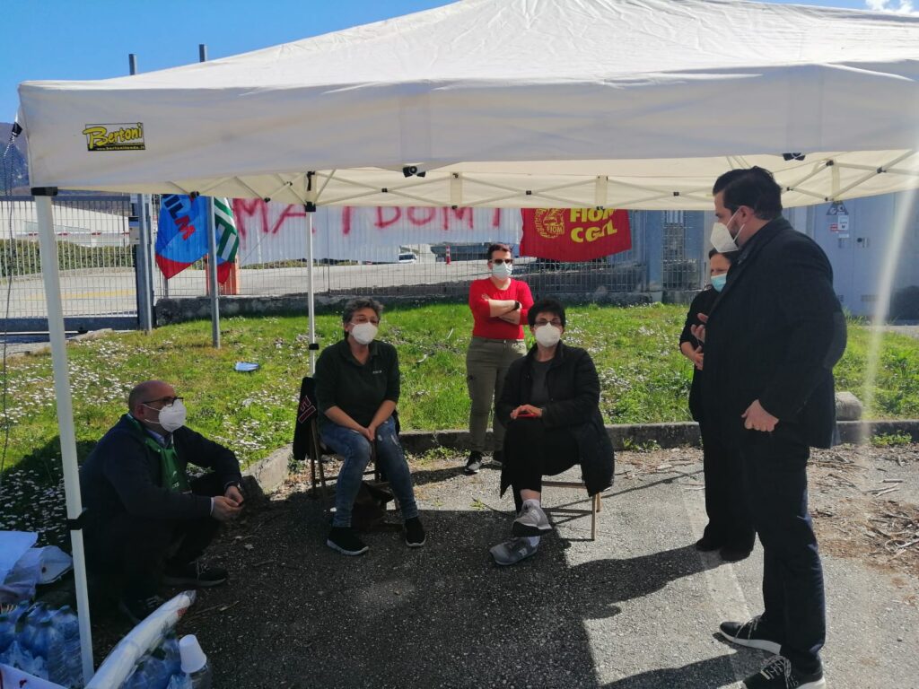 Cerreto d’Esi – Presidio continuo dei lavoratori Elica degli stabilimenti di Mergo e Cerreto D’Esi (Ancona) da oggi per protestare contro le decisioni nel Piano strategico 2021-2023 approntato dalla multinazionale di Fabriano, leader mondiale nel settore delle cappe aspiranti. Piano che prevede: 409 esuberi su 560 dipendenti del comprensorio, chiusura dello stabilimento a Cerreto D’Esi e delocalizzazione del 70% delle produzioni effettuate attualmente nei siti di Fabriano, Cerreto e Mergo. I lavoratori dicono “no” a queste misure e hanno deciso di organizzare un presidio che andrà avanti tutti i giorni nel rispetto delle regole anti covid, senza assembramenti e dalle 6 alle 21:45, in linea con il coprifuoco. C’è sconcerto e, per certi versi, stupore rispetto a quanto comunicato dall’azienda ieri ai rappresentanti dei sindacati di categoria di Fim-Fiom-Uilm. “Non siamo degli ingenui, ma non ci aspettavamo certo questi numeri”, la frase più ripetuta dai lavoratori di Elica presenti al presidio. C’è poca voglia di parlare ufficialmente, ci si deve ancora riprendere dallo choc. “Di certo siamo intimoriti, ma faremo il possibile per difendere il nostro posto di lavoro e far tornare Elica sui propri passi” assicurano. Sul posto anche il sindaco di Cerreto d’Esi, (foto) David Grillini e il vice sindaco, Michela Bellomaria.
