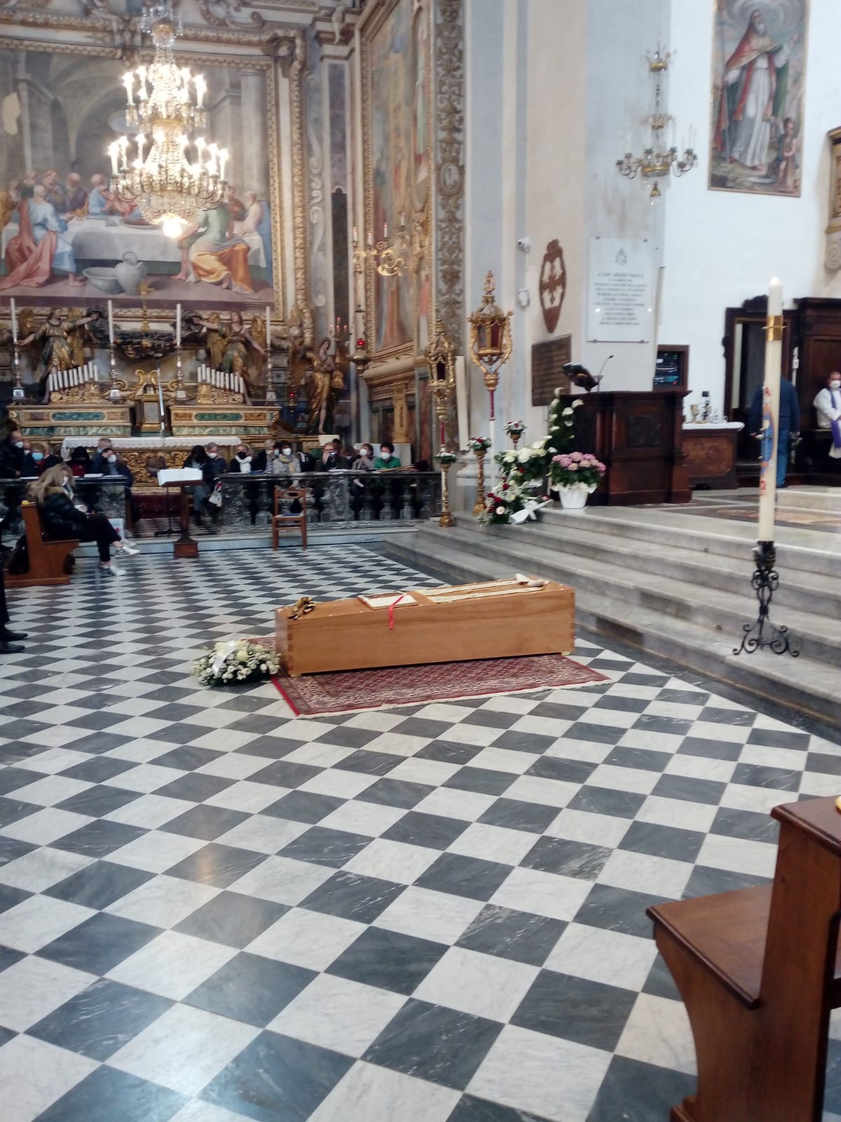 Fabriano – Con l’inno “Madonna del Buon Gesù”, patrona di Fabriano, che don Alfredo sempre cantava, si è concluso, poco fa, il funerale del parroco della Cattedrale di Fabriano deceduto per covid-19 sabato mattina all’ospedale di Torrette. Don Alfredo Zuccatosta ha compiuto il suo ultimo viaggio terreno. In chiesa la Messa presieduta dal vescovo emerito Giancarlo Vecerrica, insieme al cardinale Edoardo Menichelli (il vescovo Massara è in Calabria per accertamenti medici) e al clero diocesano. Messaggi sono arrivati dai vescovi Russo e Mosciatti che non sono potuti essere presenti alla cerimonia, dai monaci silvestrini in quarantena e da tanti che, nel corso degli anni, hanno collaborato con lui. Sul sagrato, a mezzogiorno, le ultime note: il “Silenzio” suonato dalla Banda cittadina. Alle esequie erano presenti anche rappresentanti delle forze dell’ordine, il sindaco Santarelli e l’ingegner Francesco Merloni. Tutta la città si è stretta intorno a don Alfredo, il parroco della Cattedrale che aveva la passione per l’arte (sua l’intuizione e la creazione del Museo Diocesano), per la liturgia (nel 2010 portò in città la Settimana Liturgica Nazionale) e l’impegno costante per i giovani sia in parrocchia, con l’oratorio, che con gli Scout e il Gruppo Giovani Guide, nato, a San Venanzio, recentemente, per far conoscere a tutti le meraviglie della Cattedrale. La bara, al termine del rito, è stata portata a spalla dai sacerdoti. Fuori, sempre nel rispetto delle norme covid-19, l’ultimo grazie a un sacerdote che ha dato tutta la sua vita per la Diocesi e per la città.