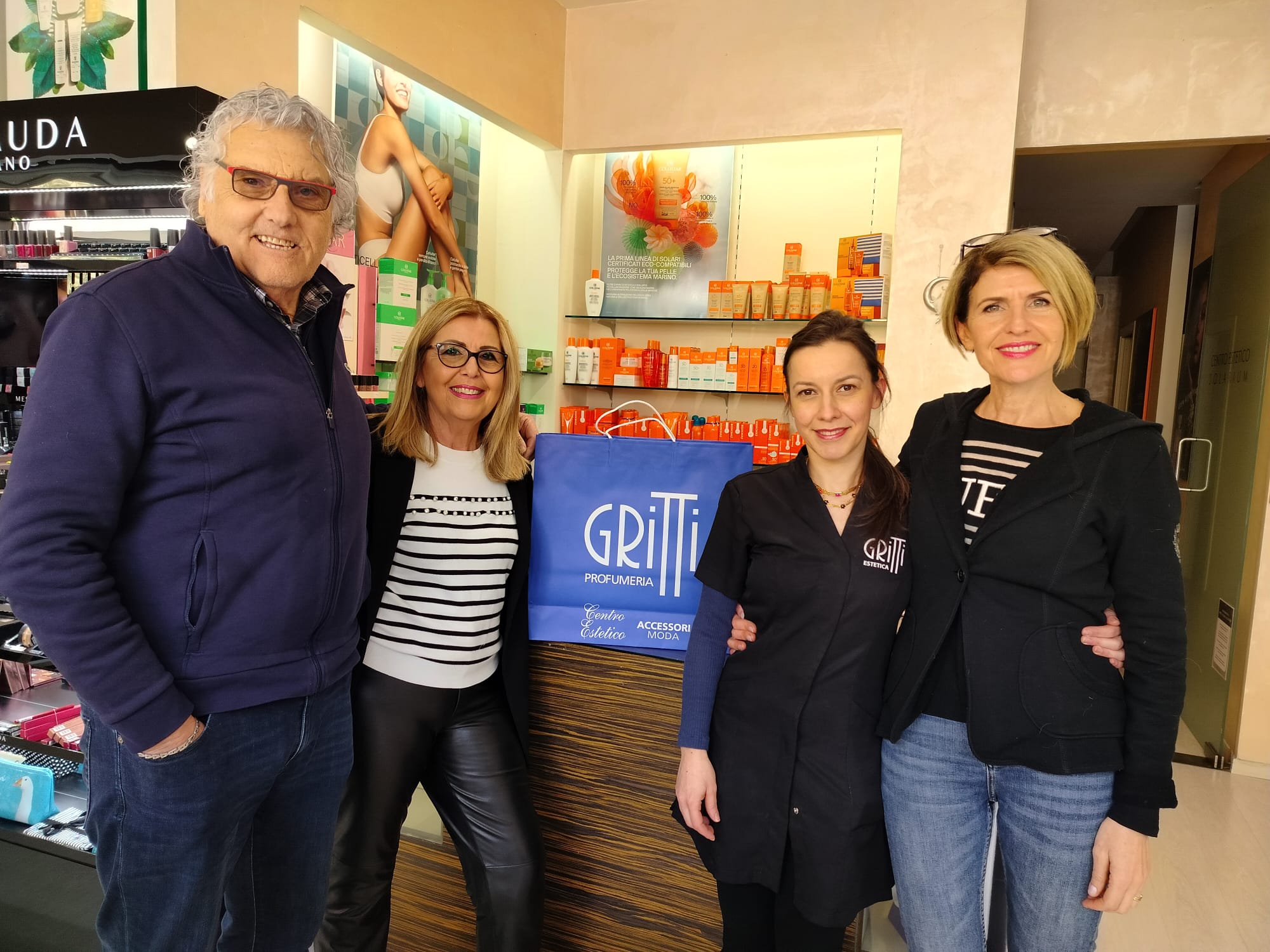 Nasce da mio padre Tarcisio e dal suo ex socio, entrambi venivano già dal campo della profumeria, nel 1983 si incontrano e in pochi mesi fondano la Gritti srl, il nome nasce dall’ incontro a Venezia nel famoso hotel Gritti appunto, nobile famiglia di dogi veneziani. Da lì i primi due punti vendita di Fabriano, poi Jesi, Chiaravalle e Falconara.