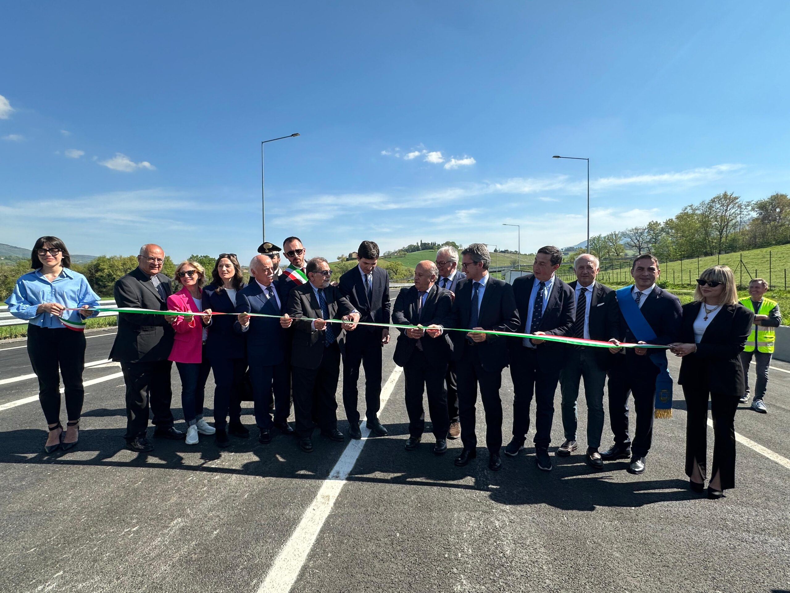 MATELICA – Sono 8,4 i chilometri del nuovo tracciato della Pedemontana aperto oggi pomeriggio (13 aprile) con un taglio del nastro presso lo svincolo di Matelica Nord situato nella zona industriale. Alla presenza di autorità civili, militari e religiose, il presidente della Regione Marche Francesco Acquaroli ha tagliato il nastro di questa importante opera insieme al vicesindaco Denis Cingolani e all’ex viceministro e senatore Mario Baldassarri, uno dei principali sostenitori del progetto Pedemontana. Il tratto aperto al traffico, per un investimento di 95,7 milioni di euro, è lungo complessivamente 8,4 km e si aggiunge al primo stralcio aperto nel 2021 rendendo percorribili complessivamente 17 km tra Fabriano e Castelraimondo. Il tracciato comprende 2 gallerie: la galleria “Croce di Calle, lunga 1,5 km, e la galleria “Mistrianello”, lunga circa 1 km. Sono inoltre presenti 5 ponti e viadotti e 4 svincoli a livelli sfalsati che assicurano la connessione alla viabilità locale: Matelica Nord, Matelica Ovest, Matelica Sud e Castelraimondo Nord. Nel frattempo, proseguono i lavori per il completamento dei restanti due stralci funzionali che completeranno l’intera direttrice Fabriano-Muccia, lunga complessivamente 35 km, per un investimento totale di 344 milioni di euro. Alla cerimonia era presente anche l’amministrazione comunale matelicese, con il vicesindaco Denis Cingolani che ha fatto un breve discorso di ringraziamento sottolineando l’importanza dell’opera: «Nei prossimi anni la Pedemontana sarà un volano di sviluppo per tutto l’entroterra e collegherà in pochi minuti paesi al momento molto distanti – ha spiegato Cingolani -. Il nostro sindaco Massimo Baldini sarebbe stato molto orgoglioso oggi di essere qui tra noi, quotidianamente lui visitava i cantieri per controllare i lavori e si confrontava con il consigliere della Quadrilatero Pettinari per discutere dell’avanzamento delle opere e per cercare di accelerare quanto più possibile le attività. Speriamo di riaverlo presto tra noi e nel frattempo lavoriamo nel solco da lui tracciato. Ora tocca a noi rendere la città di Matelica sempre più attrattiva sfruttando quelle che sono le nostre eccellenze e attirando un sempre maggiore flusso di turisti».
