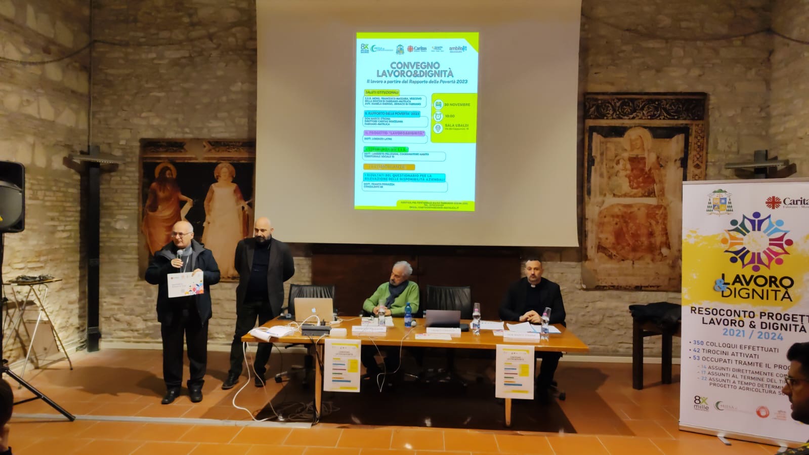 Grazie al contributo dei fondi 8 per 1000, il progetto “Lavoro&Dignità” per l’inserimento lavorativo di persone disoccupate attraverso percorsi di accompagnamento, in tre anni ha finanziato una trentina di tirocini presso le aziende del territorio fabrianese. Ne parliamo con don Marco Strona, Direttore della Caritas Diocesana Fabriano-Matelica, che ci illustrerà anche i risultati di questo progetto diocesano che sono stati presentati a Fabriano il 30 novembre scorso al Convegno “Lavoro&Dignità”, i cui lavori sono stati introdotti dal Vescovo della Diocesi Fabriano-Matelica Monsignor Francesco Massara.